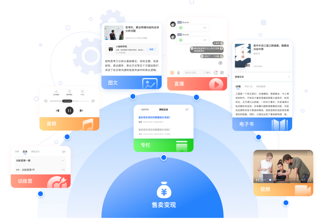 用户引流、线上课堂、品牌推广、商业变现,全面构建知识付费闭环
