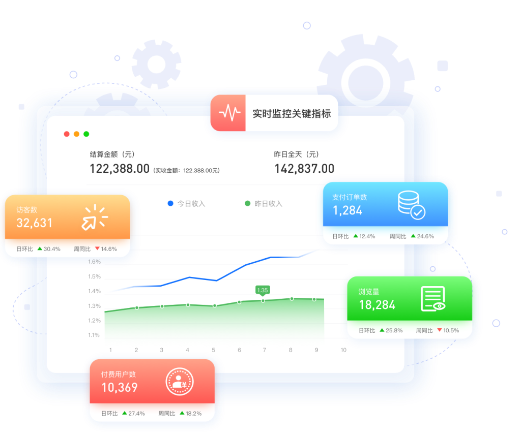 自动分析店铺流量获客及用户活跃情况,呈现用户活跃及客户复购趋势;清晰查看在售商品类别数量、付费排行以及单个商品访问和付费情况,实现数字化运营管理。